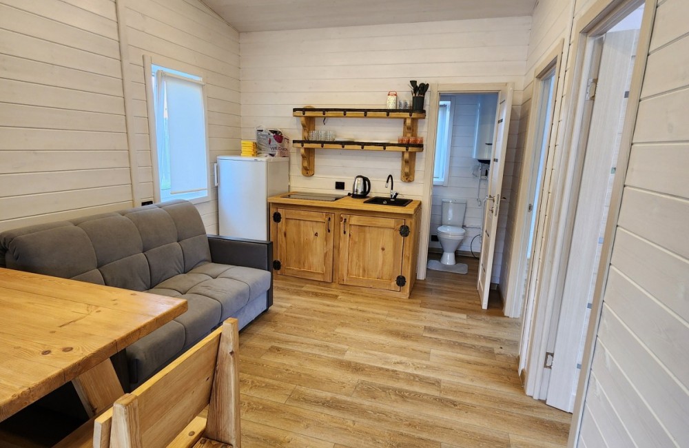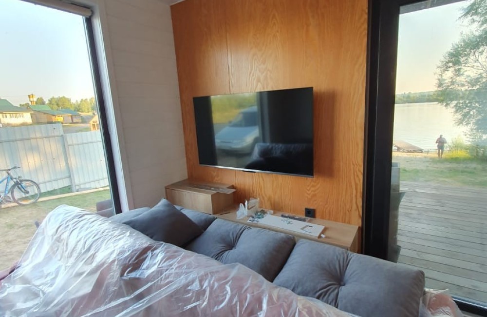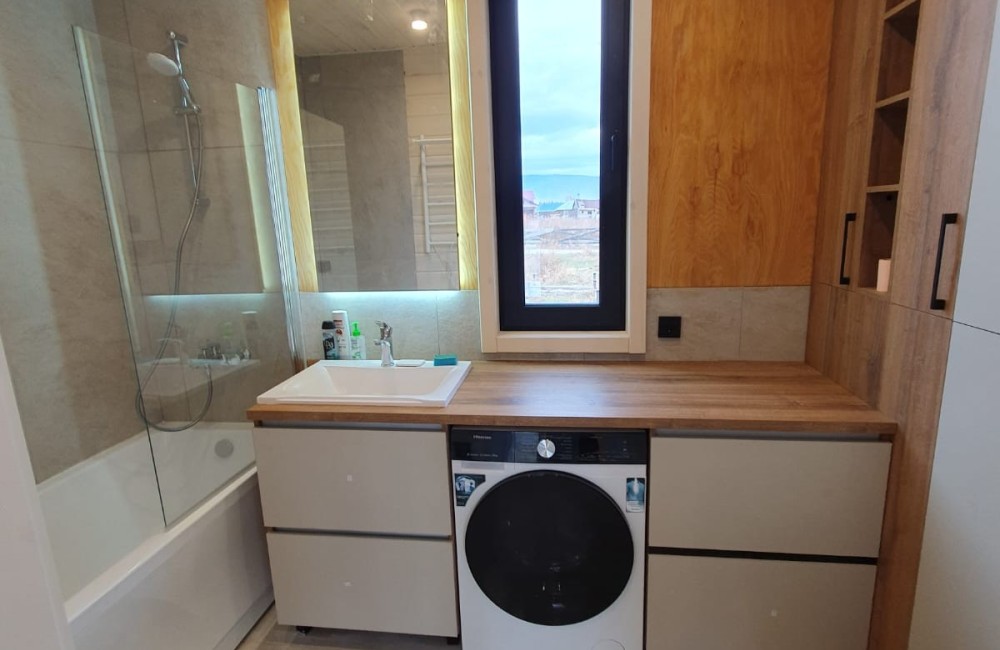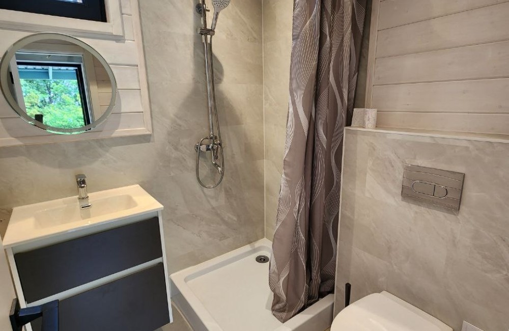 В базовую комплектацию дома входит установка унитаза, раковины и душевого поддона, но возможны варианты установки инсталляции, ванны или душевой кабины.