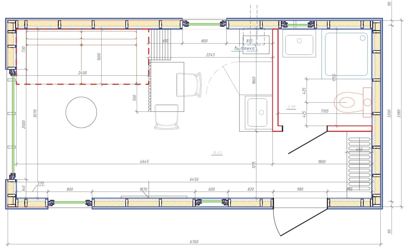 | Проводка и коммуникации скрытые в стенах с выводами внутрь. |