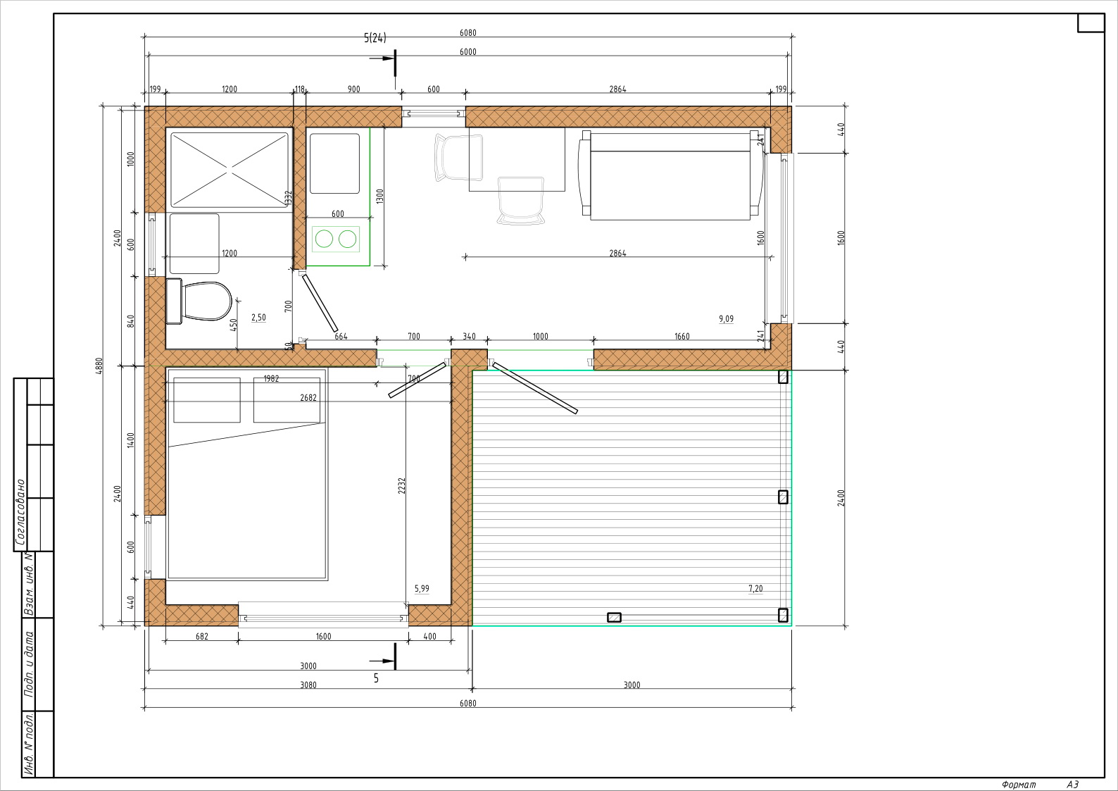 | Проводка и коммуникации скрытые в стенах с выводами внутрь. |