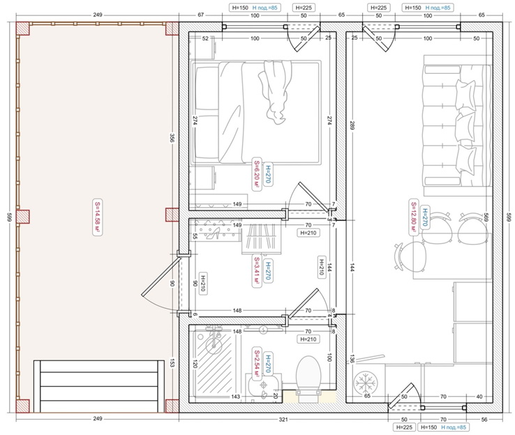 | Терраса большая с кровлей. |