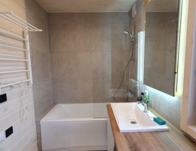 | С/у с отделкой стен и потолка с сантехникой. |