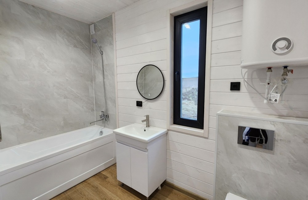 В базовую комплектацию дома входит установка унитаза, раковины и душевого поддона, но возможны варианты установки инсталляции, ванны или душевой кабины.