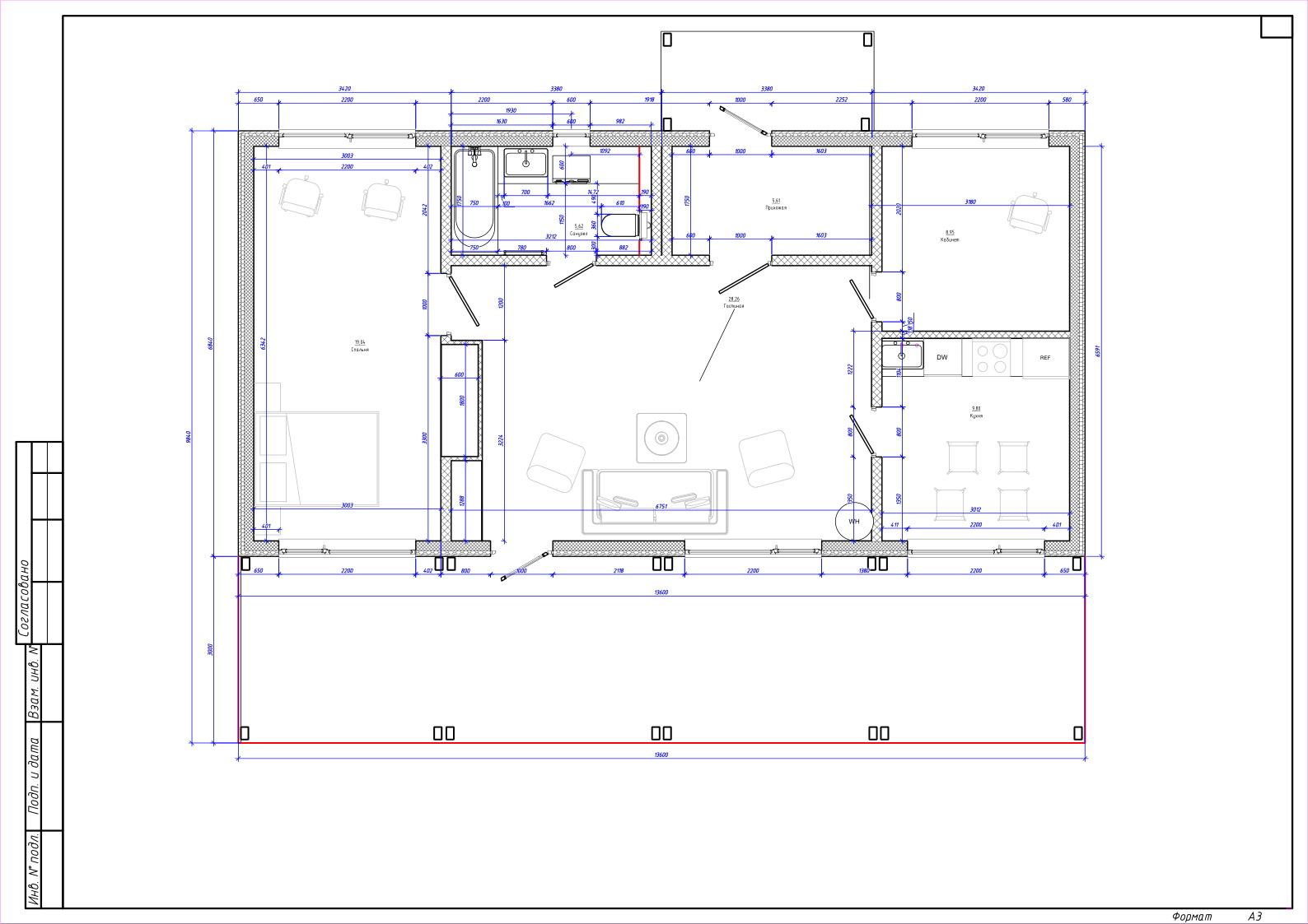 13,6 м * 6,84 м